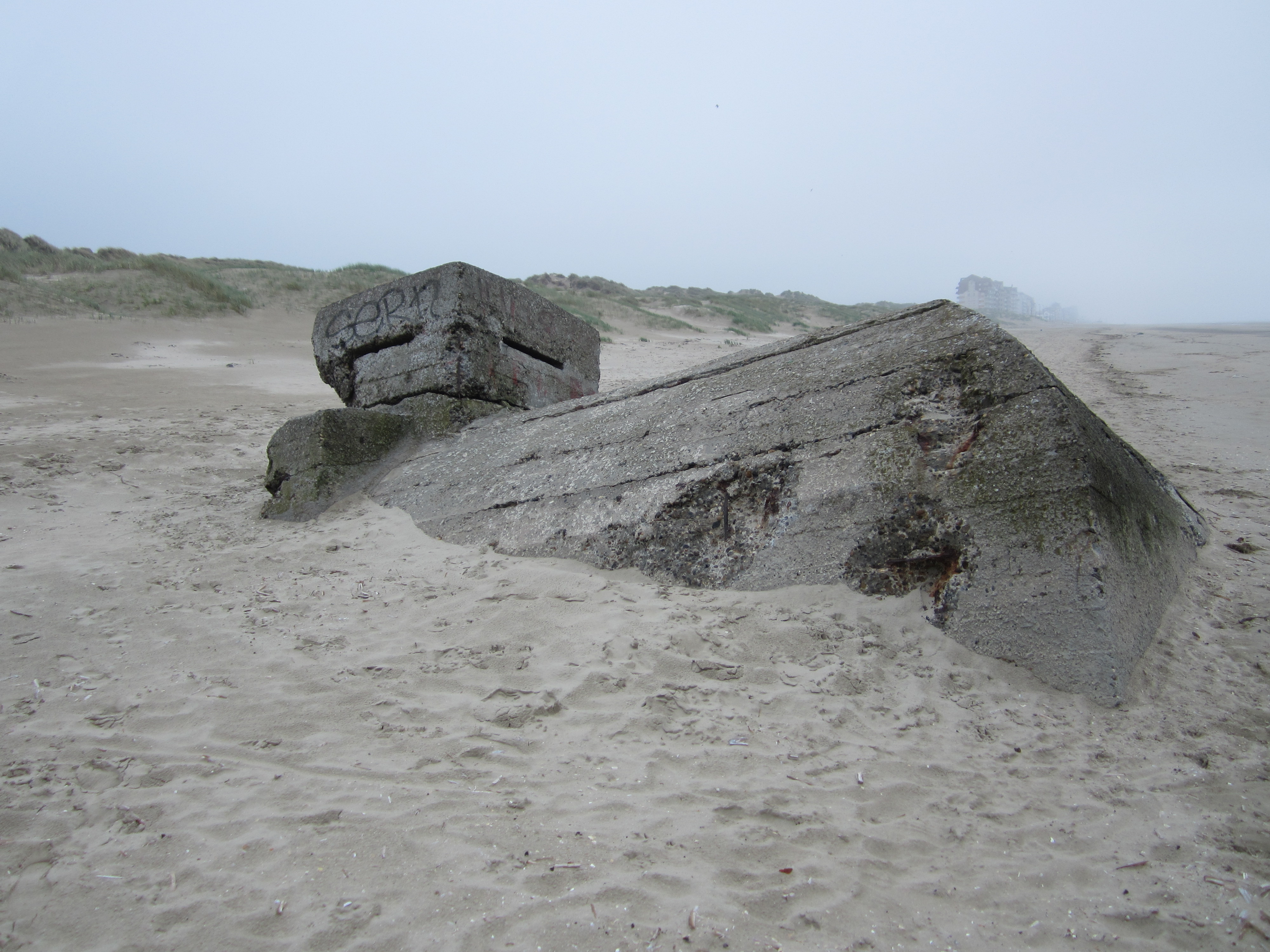 After the defeat of France, the beaches in this area became part of the Atlantic Wall, the fortifications of which can be seen today and feature in the second half of the photos.