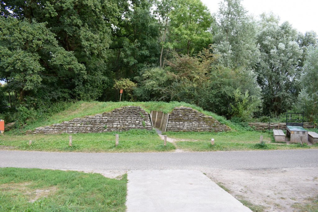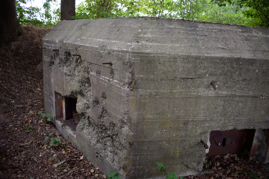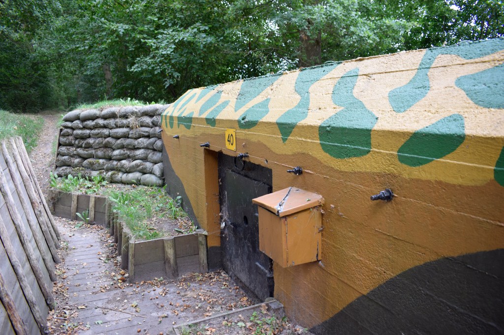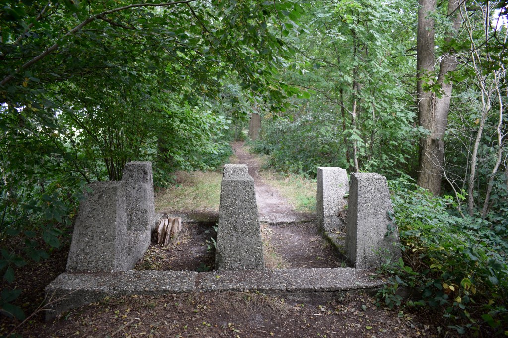 A memorial stands among the bunkers, commemorating four civilians who were executed by German forces in April 1945 in retaliation for shots fired at their troops.