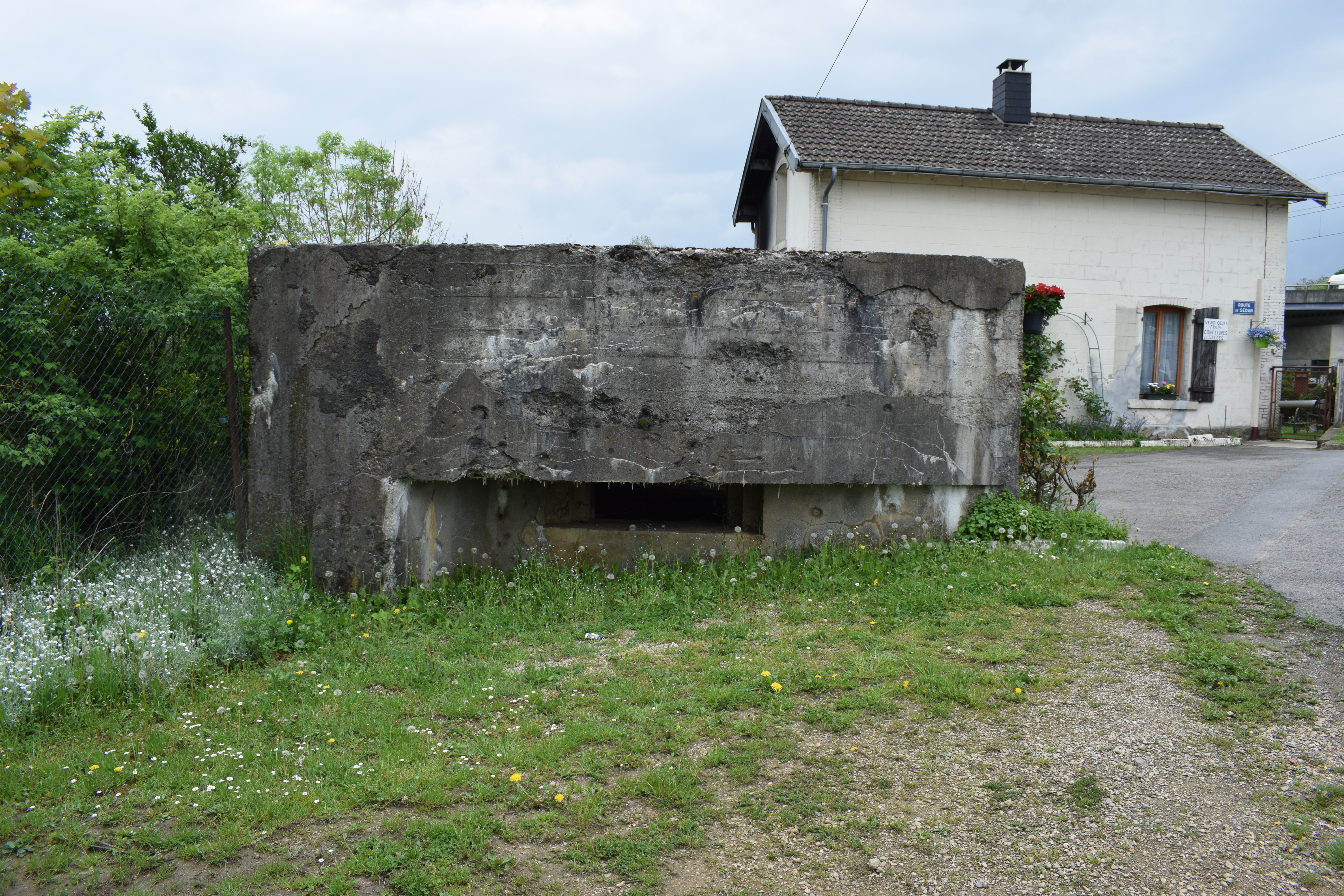 I returned to Wadelincourt in June 2017 and followed the Meuse back to Sedan photographing any unidentified structures. Of particular interest is the Bridge Bunker which can just be made out through the undergrowth along with the width of Meuse at this point and the village.
